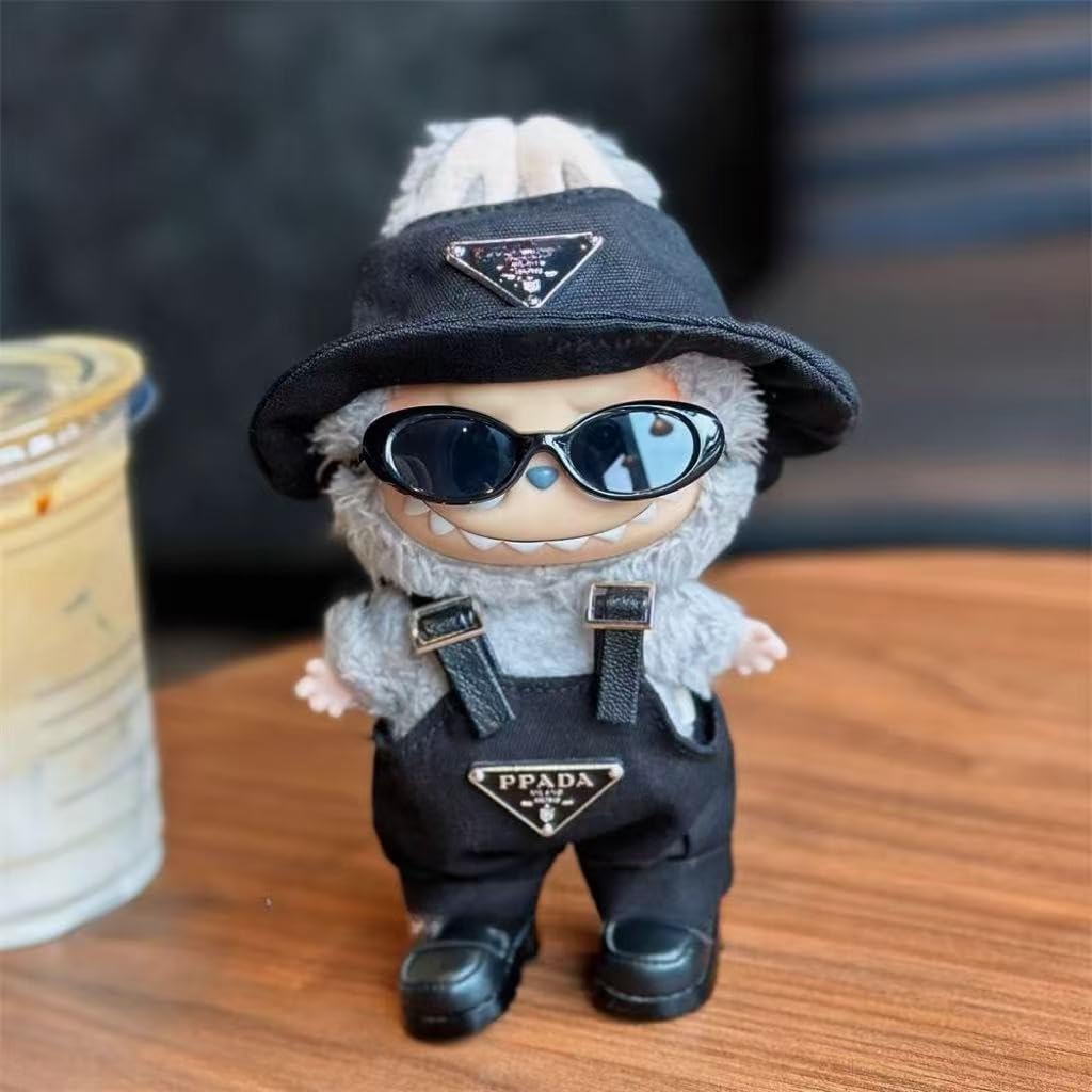 Labubu 服 Labubuぬいぐるみ 対応 手作り デニムオーバーオール&帽子セット labubu clothes 手工製作 Labubu アクセサリー かわいい ドール服 (pradaモデルです) [並行輸入品]